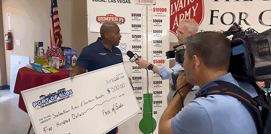 Southern Nevada Port of Subs locations are helping students start the school year on the right page! Partnering with the Salvation Army and Fox 5, they donated $500 live on TV to support the back-to-school drive. The contribution helps provide backpacks, supplies, and resources to children in need across the community, giving them the tools to hit the books with confidence.